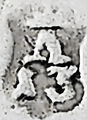 7. Denn ein Schild des Korbacher Meisters Ludwig Vesper von 1846 hat die gleiche Umrissgestaltung mit verstärktem Rand (und zusätzlich eine ruhende geprägte Löwensilhouette) (Nr. 18e), in: Reiner Neuhaus, silber-kunst-hessen.de, Die Goldschmiede von Korbach).