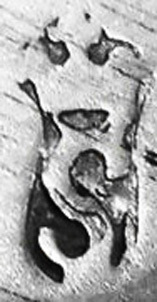 M. L. Poßin (Nr. 17) war sicher der bedeutendste Goldschmied Schmalkaldens Ende des 17. Jahrhunderts. Er fertigt für die lutherische Gemeinde von St. Georg 1702 einen Kelch ganz im Stil der Zeit (Abb. 17c). In guten Proportionen sind Sechspassfuß, Kissennodus und Becherkuppa im Stil des Hochbarock aufeinander abgestimmt. Für die reformierte Gemeinde Steinbach-Hallenberg gelingt ihm 1698 ein Kelchpaar, das ganz den Geist des Deutsch-reformierten Bekenntnisses zum Ausdruck bringt (Abb. 17a). Sieht man von den auf die Fußrücken platzierten Puttenköpfchen ab, könnte dieses Paar mit seinen aufs Äußerste reduzierten Sechspassfüßen, den nur durch Zierrillen aufgeteilten Nodi und den becherförmigenKuppen durchaus als ein Produkt der Neuen Sachlichkeit der 30er Jahre des 20. Jahrhunderts durchgehen.